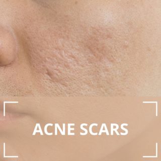 Acne scars appear as pitted, raised and sometimes dark patches of skin mostly in areas susceptible to acne such as the face, back and chest.